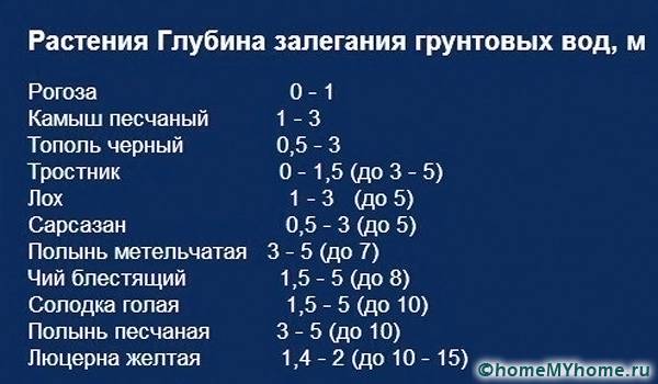 Lingonberry, малини или къпини растат добре в райони, където водата тече не по-близо от 45-60 cm от повърхността.Морски зърнастец, касис или цариградско грозде растат забележително, ако даденото ниво на подпочвените води е 105-115 см. Ако нивото на водата е на разстояние 155 см, тогава сливата, черешовата слива или черешовото дърво ще се чувстват чудесно. Кайсии, кестени и ябълкови дървета растат забележително при водна маса от 2,5 метра. Червените боровинки могат да растат в много влажни зони.
