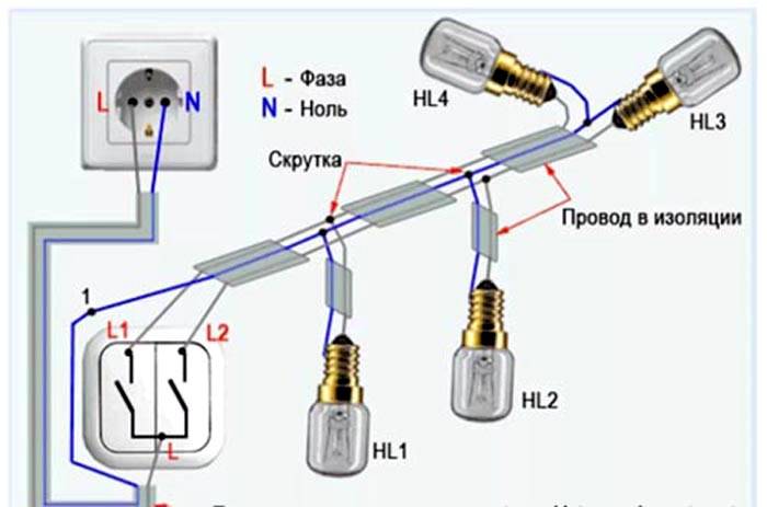 Определено ще разгледаме инструкциите стъпка по стъпка за инсталиране на схема за свързване на двойни ключове за две лампи по-долу. И сега има смисъл да разберете как да монтирате полилей с три рамена с отделно включване.