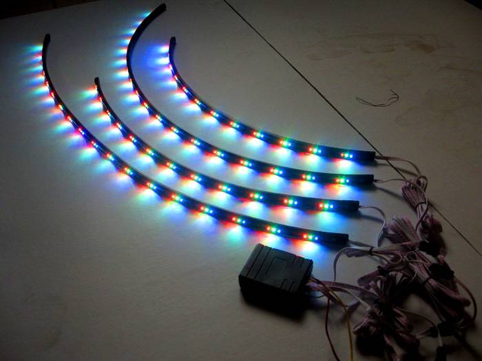 Типът светодиоди определя възможната консумация на енергия на продукта. Различава се с разнообразие от светлинна температура и цветова палитра на сиянието. Монтажът се извършва с помощта на скоби, които осигуряват неусложнено закрепване. От вътрешната страна на лентата има лепкав слой. За да се фиксира конструкцията, защитният слой се отстранява и лепкавата страна се фиксира към повърхността.