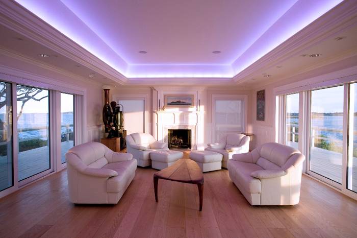 С помощта на LED конструкции можете да реализирате всякакви дизайнерски идеи и интересни проекти. Можете да използвате оригинални източници на светлина за контурно осветление на подове, стъпала, мебелни комплекти и разнообразни декоративни елементи. Такова осветление се използва успешно за осветяване на труднодостъпни места и само облагородява интериора.