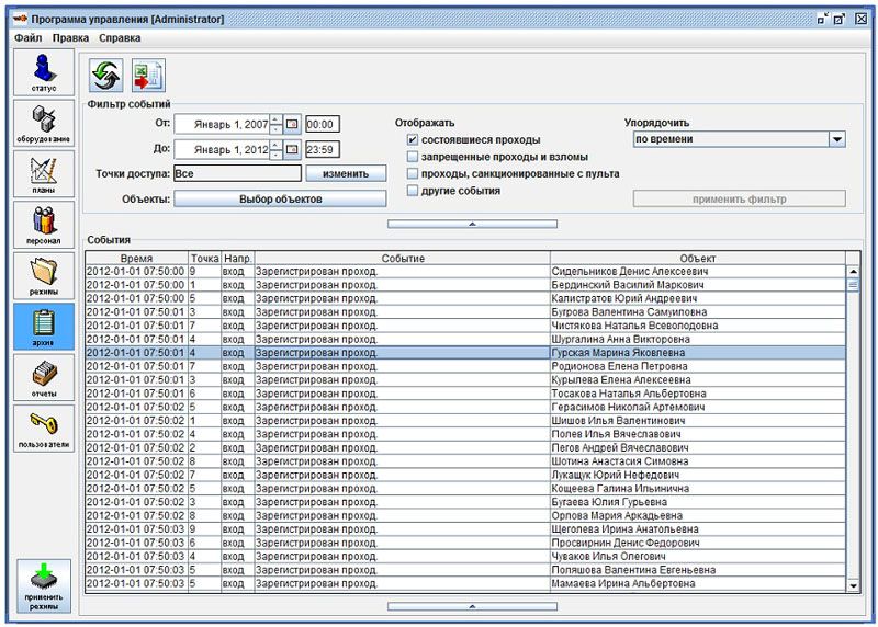 Инсталираният на компютъра софтуер ви позволява да използвате цялата функционалност на системата: да наблюдавате онлайн събитията, които се случват на контролирания обект, и да конфигурирате потребителски права, да създавате карти за персонала и да издавате пропуски, да следите работното време и да известявате sms и e-mail.