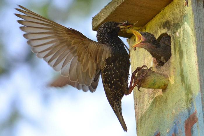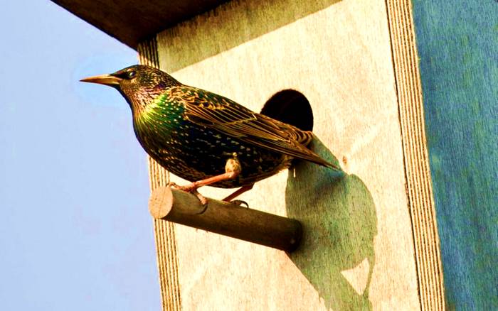 Скорците не са капризни птици. Те охотно се установяват в малки котловини, в пукнатини под покрива и дори в дупки. Така че самоделната къща за скор е луксозно жилище. В знак на благодарност за такъв апартамент малката певица усърдно ще зарадва ушите ви с наводнено пеене и ще следва градинските ви дървета, спасявайки ги от насекоми, които ядат листа. За една седмица той е в състояние да открие и изяде около хиляда и половина ларви на бръмбари, както и гъсеници и други насекоми.
