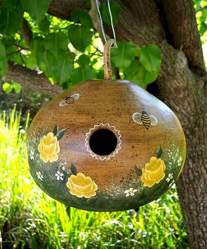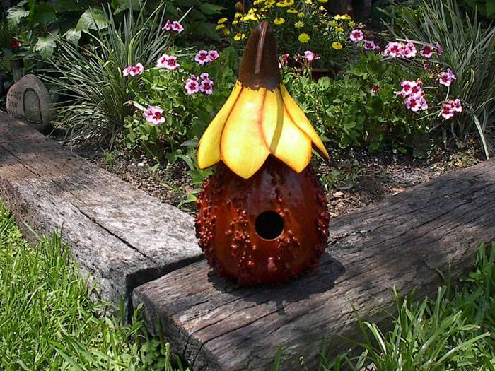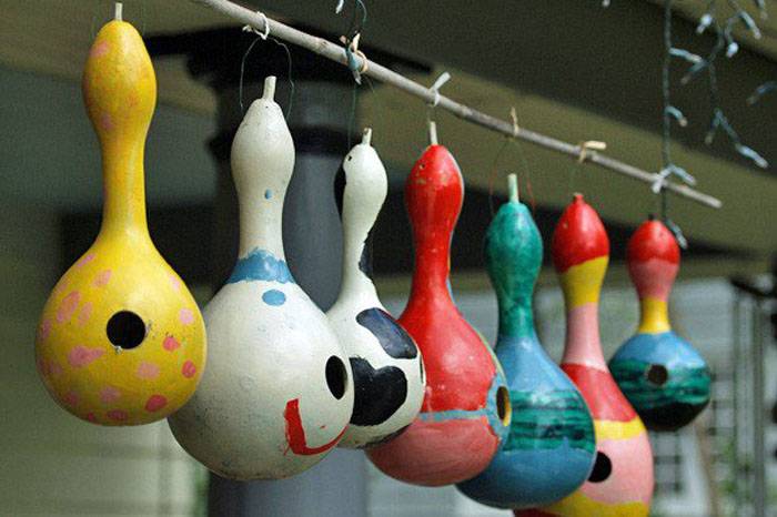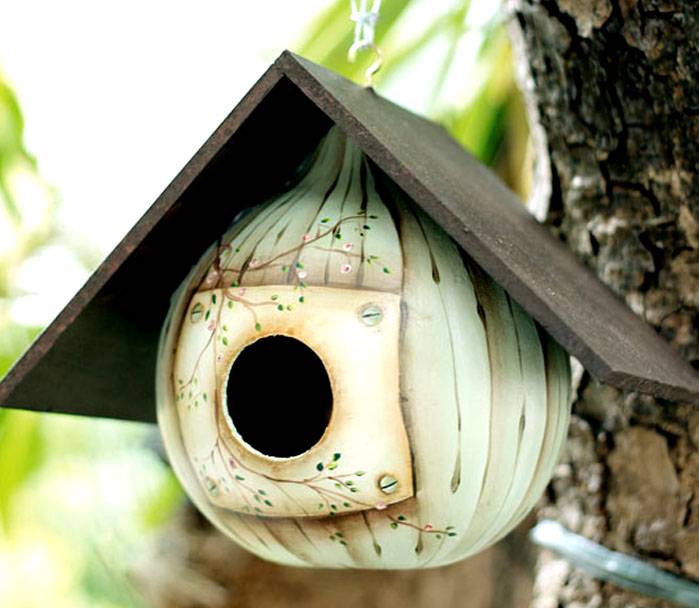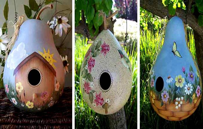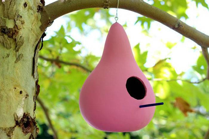 Птиците ще харесат това настаняване. Те с ентусиазъм ще го изчистят от остатъците от суха пулпа и ще изведат пилетата за ваша радост. Снимката показва примери за такива къщички за птици: