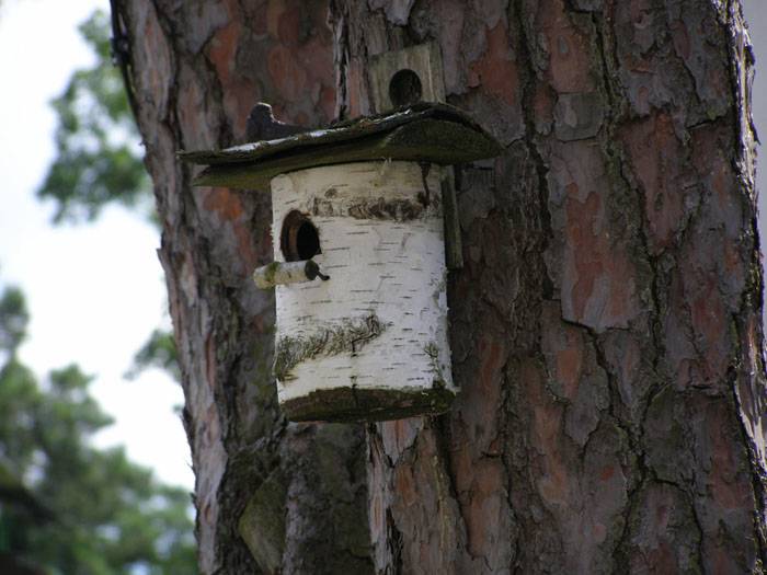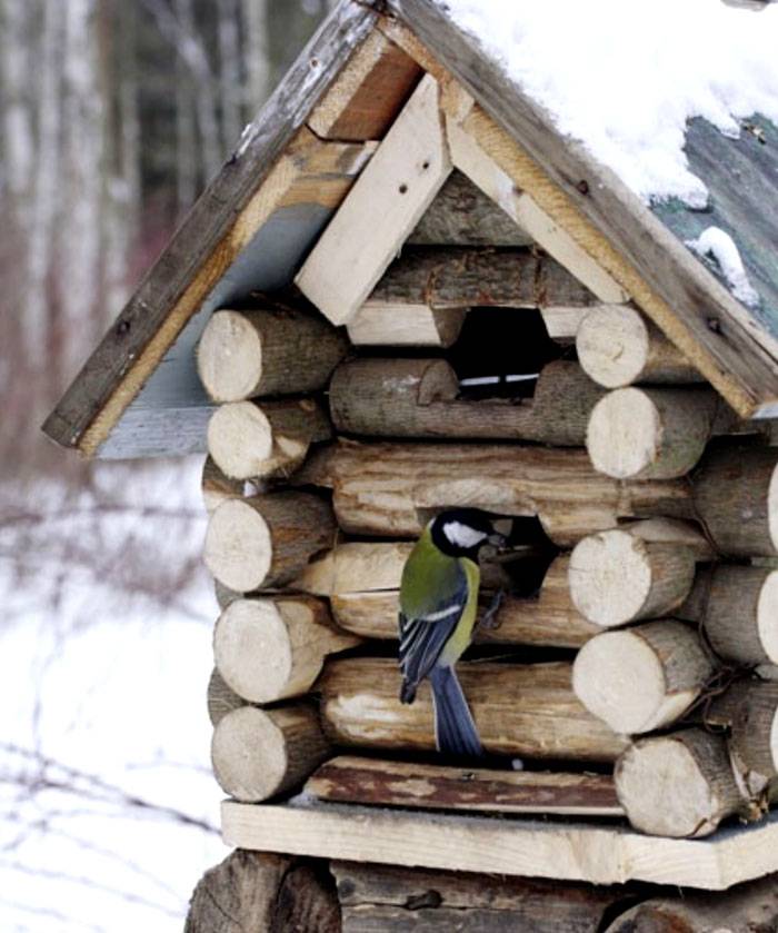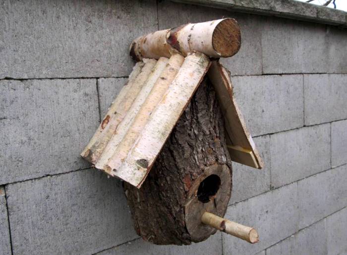 Дървото е идеален материал за направата на къща за птици. Най-близо е до естествените условия на живот на птиците. Можете да направите къща от дъски или трупи. За къщичка за птици са подходящи стар пън, дебела кора, облицовки от индустриално дърво.