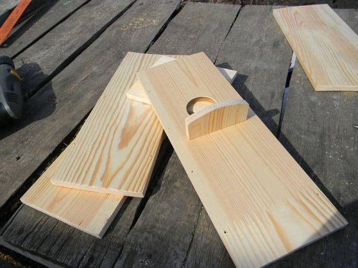Съвет!По-добре е да използвате шперплат, устойчив на влага, за работа. Такъв дизайн безопасно ще оцелее повече от един сезон.