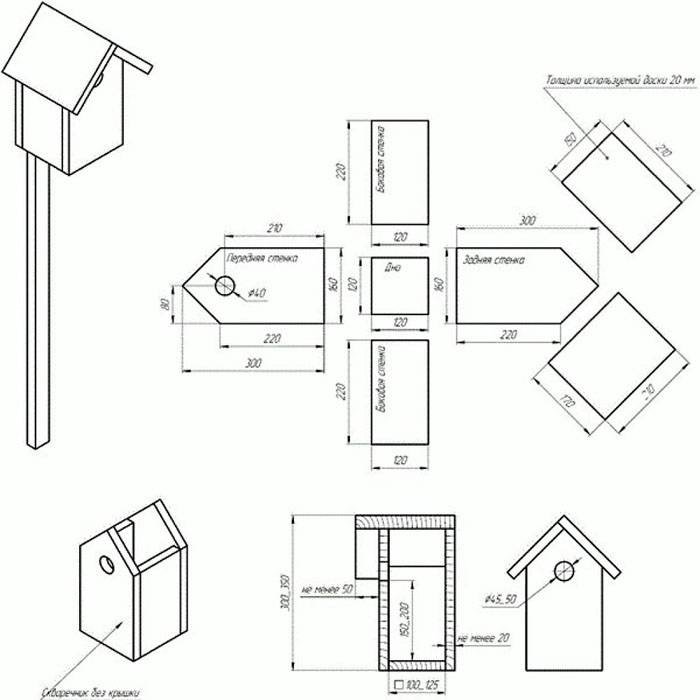 Много е казано за материалите за къщичката за птици. Време е да поговорим за чертежи и размери. Как да направите рисунка правилно?