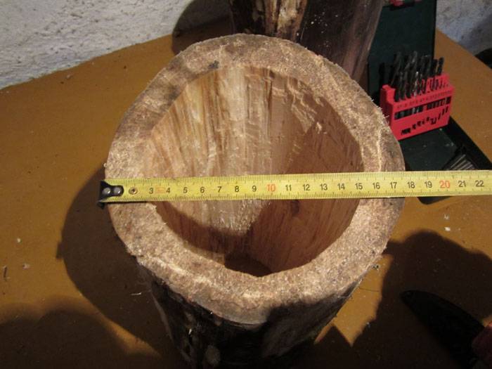 Свредло с приставка за писалка ще помогне да се улесни работата. За дъното използвайте разрез от същия труп. Входът може да се направи и с бормашина. На снимката примери за такава работа: