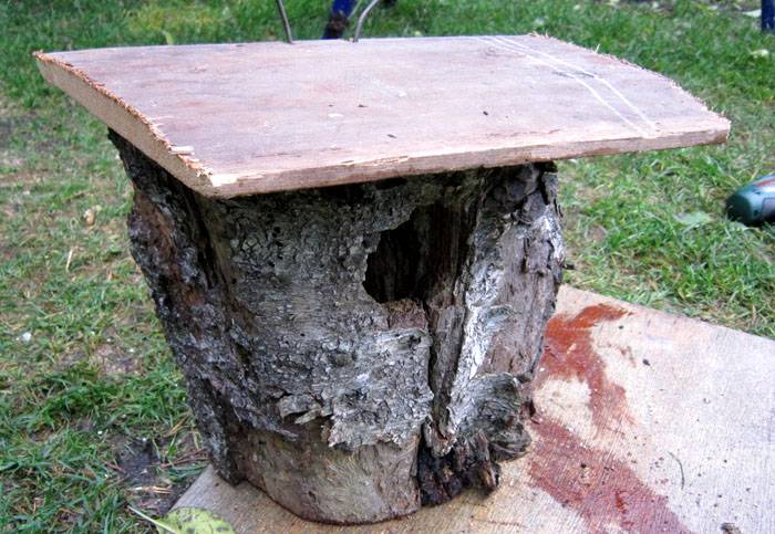 - Ако не знаете как да направите къща за птици от дъски, изберете проста опция - гнездо. За тази цел се изисква обикновен труп с необходимия диаметър и височина.