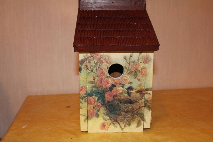 Съвет! По-добре е да направите покрива на къщата подвижен. Така че в края на сезона можете да почистите къщичката за птици и да я подготвите за пристигането на нови наематели.