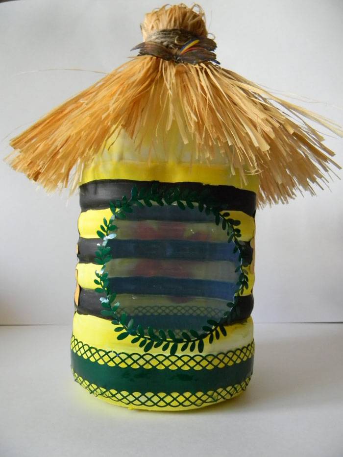 В пластмасова бутилка трябва да се изреже кръгла дупка. Острите ръбове се изгарят най-добре внимателно. Те ще се стопят малко и ще бъде по-лесно за птицата да се задържи на ръба на входа. За направата на костур е подходящ дълъг болт. Той е закрепен с винт и шайба. Металът не трябва да се нагрява на слънце, той трябва внимателно да се увие с груба нишка или въже.