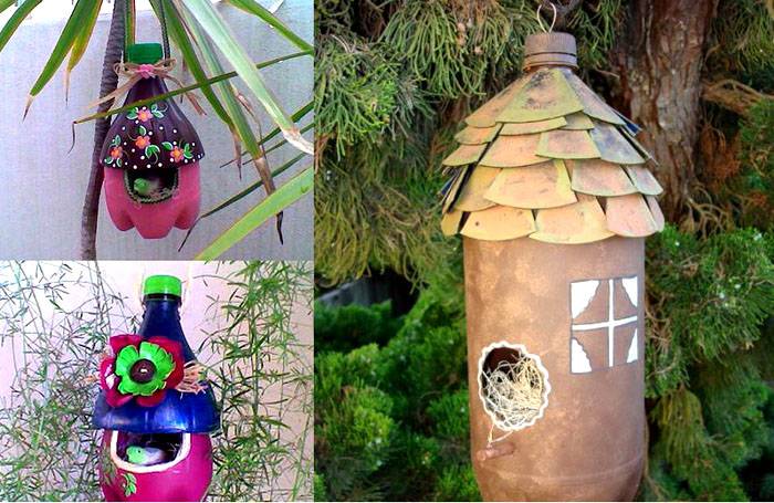 Идеи за това как да направите къщички за птици от пластмасови бутилки, снимка: