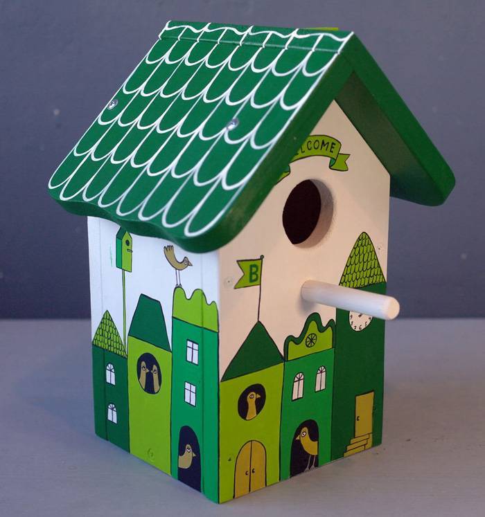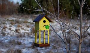 Има различни мнения относно това дали къщичка за птици може да се рисува с бои. Противниците на рисуването настояват, че цветът на къщата няма значение за птиците, а острият аромат на емайла може не само да изплаши скорците, но и да причини непоправима вреда на потомството им. Ако следвате тази логика, къщите могат да бъдат от всякакъв цвят, тъй като птиците не се интересуват, а боята трябва да е на водна основа. Той е без мирис и напълно безопасен. Когато решавате как да украсите гнездо, обърнете внимание на акрилните багрила. Те са устойчиви на влага и перфектно предпазват дървото от негативни външни влияния. Можете да използвате картинки за деца, абстрактни шарки или орнаменти. За да може боята да пасне добре, външните части на конструкцията трябва да бъдат изравнени с равнина и шлифовани с шмиргел.