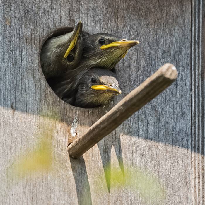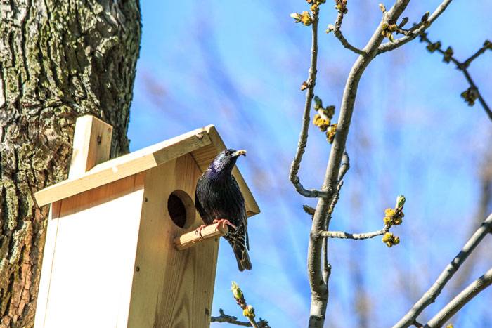 Ако скорците харесват вашия дизайн, те сами ще донесат материала за гнездото. Можете да ги улесните, като поставите вътре суха трева, парчета плат или малки клонки.