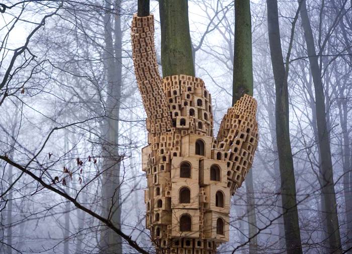 Вижте снимката на това колко добре се чувстват скорците в къщичка за птици с необичаен дизайн: