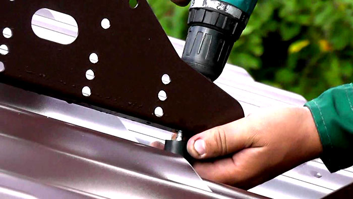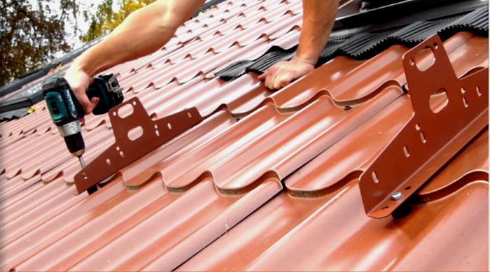 - Фиксираме скобите на покривните склонове с помощта на винтове с параметри 0,8 × 6 mm.
