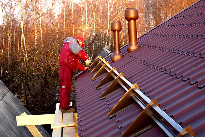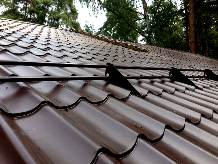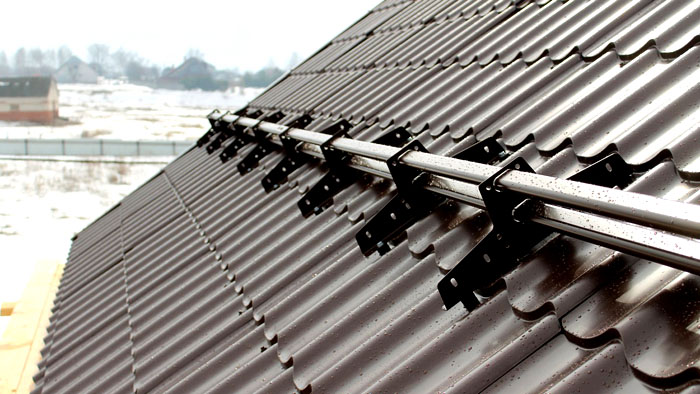 Монтаж на снегозащити върху гофриран покрив