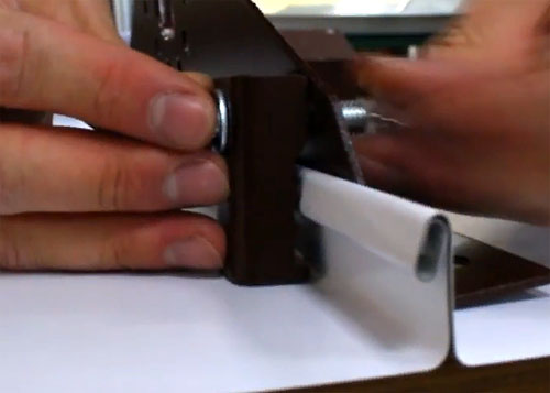 - Вмъкваме лентите в отворите на скобите, така че да не падат, инсталираме щепселите до краищата.