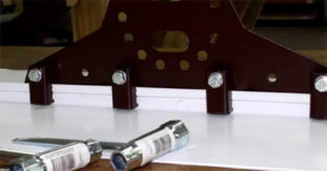 - Прикрепваме устройството към щайгата, така че следващият лист материал да припокрива плочата на скобата.