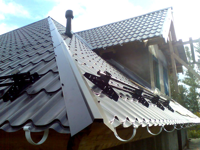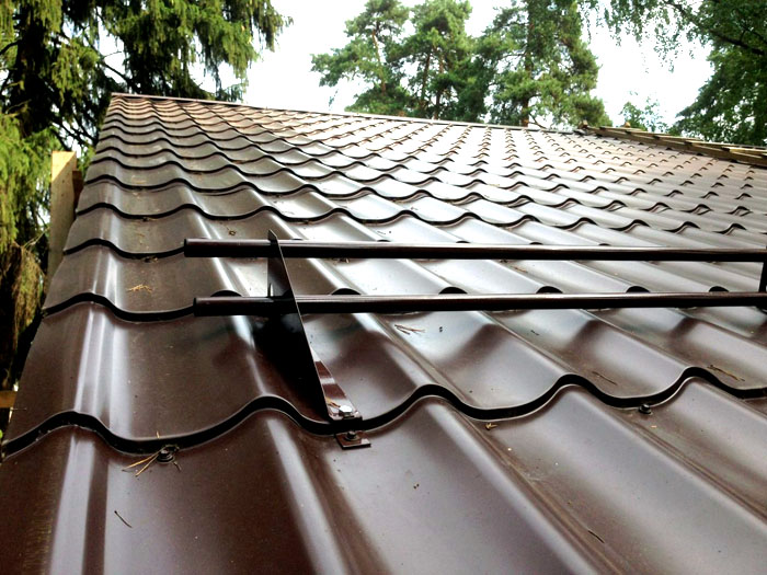 Задържането на сняг върху покрив от метални керемиди се извършва с помощта на подходящи конструкции. На този тип покритие те се опитват да монтират ъглови, решетъчни, тръбни. Те се инсталират на етапи: