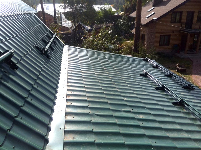 Монтаж на снегозащити върху метален покрив