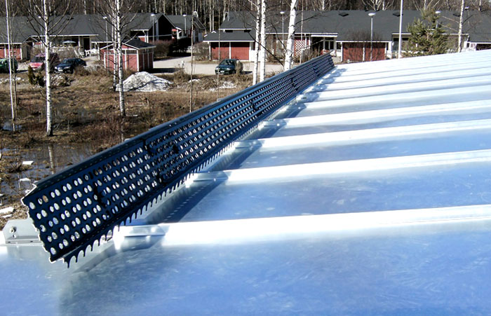 В краищата на металните профилни листове са монтирани пластмасови държачи за сняг