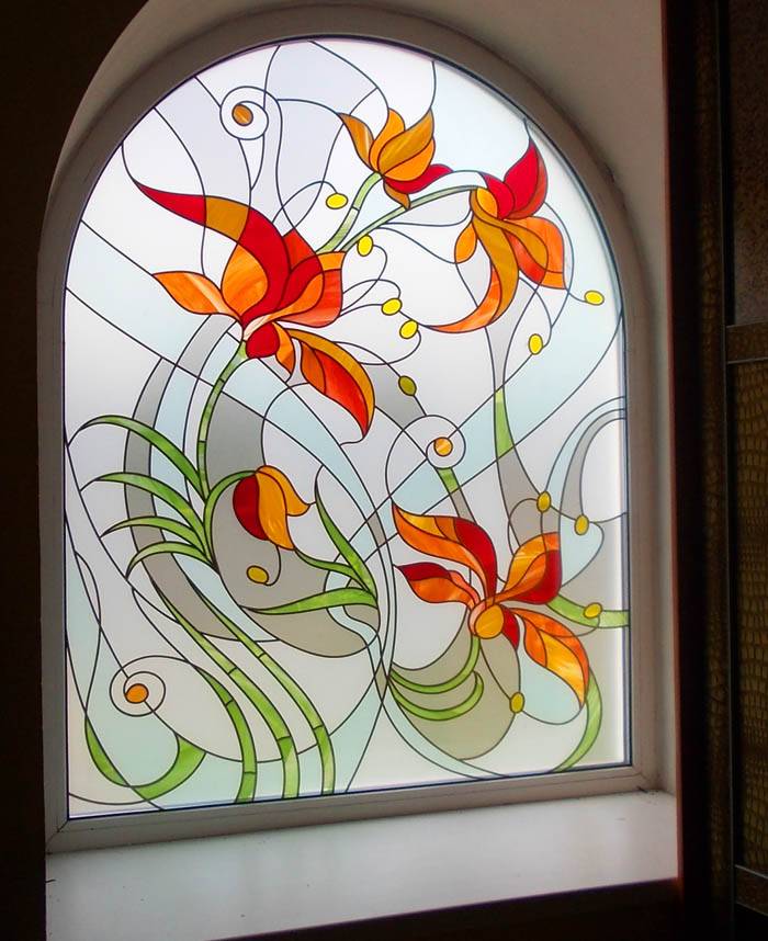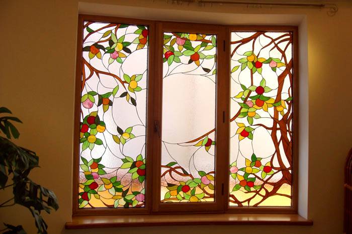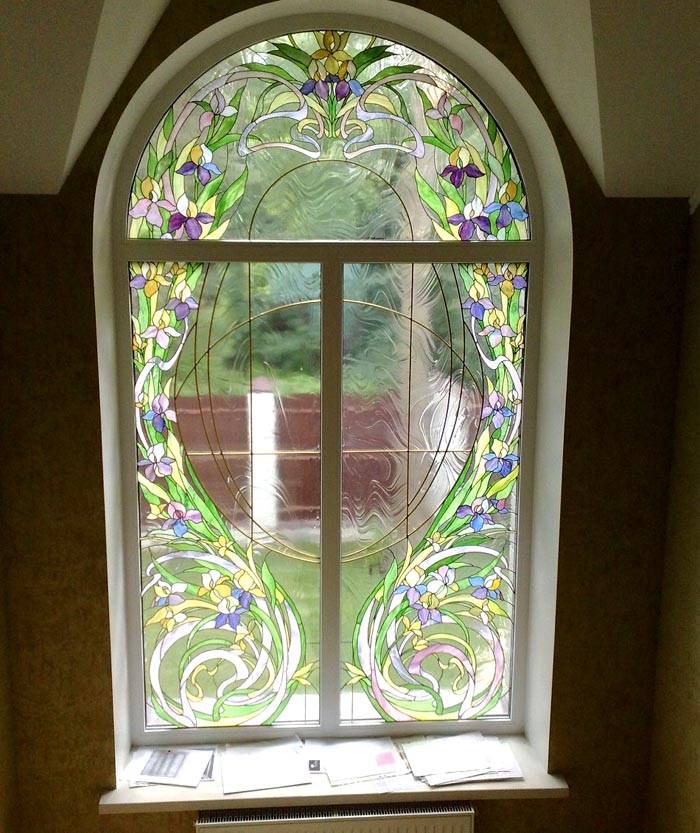 Както вече споменахме, стандартите за такива конструкции като прозорци и врати са много неясна концепция. Единственото, което е наистина важно, е размерите на самия прозорец да са по-малки от отвора на прозореца с 20-30 см ширина и височина. В противен случай инсталирането им става по-трудно. Оказва се, че стандартните размери на прозорците за частна къща са тези, които са удобни (без да се нарушава здравината на конструкцията). Най-големите отвори за прозорци са направени за витражи. Интериорът има голяма полза от такива конструкции. Важно е само това да не отива в ущърб на силата, но този момент е изцяло на съвестта на дизайнера. За да стане по-ясно как изглеждат подобни решения в интериора, предлагаме да разгледате малка галерия от снимки на витражи в частни къщи.