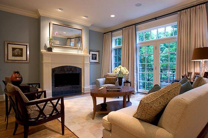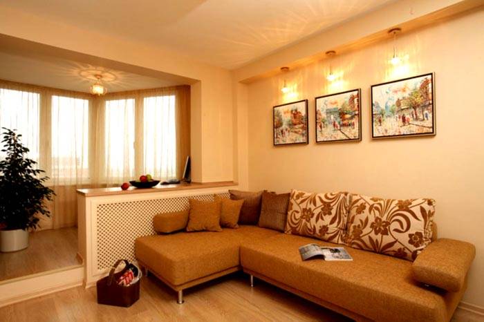 - Хол - за по-голяма видимост е позволено да спускате перваза на прозореца. Често за стандарт се приема височина от 40 см, но можете да се справите и без нея, като направите остъкляване от пода.