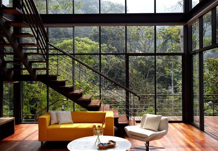 Има доста интересно решение за такива ситуации. По-долу представяме снимка на големи прозорци в частни къщи. През тях също навлиза достатъчно количество слънчева светлина. Е, наблюдението на природата през тях, макар и не толкова приятно, колкото през витражи, също е доста удобно.
