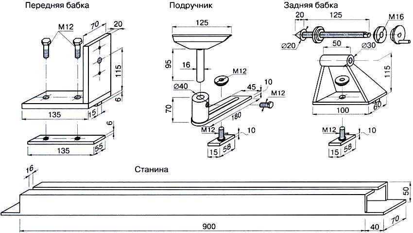 Тези чертежи с размерите на струг за дърво със собствените си ръце ще ви помогнат да изучите по-добре типичния дизайн