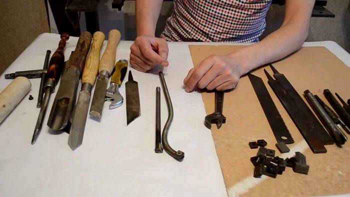 Пили, триони, ключове и други инструменти, направени от инструментална стомана, ще свършат работа. По-лесно е да се обработват детайли с квадратна форма (в изглед в напречно сечение). Уверете се, че няма пукнатини или други дефекти, които намаляват якостта. За твърдо закрепване на проходни фрези машината трябва да бъде оборудвана със специален държач.