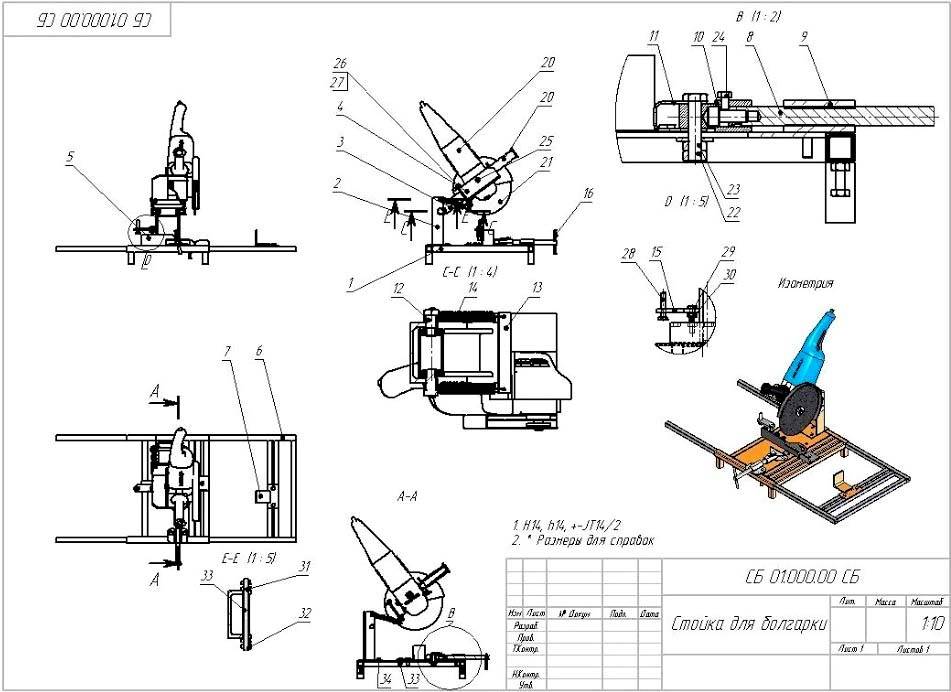 За да създадете устройство за циркуляр със собствените си ръце, можете да използвате този чертеж. В проекта се правят корекции, като се вземат предвид размерът на инструмента, допълнителните лични изисквания