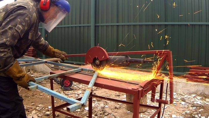 Когато е оборудвана с подходящ диск, тази машина е подходяща за рязане на метални части. Ако се предполага да се извършват работни операции с големи натоварвания, препоръчително е да се направи носещата рамка и плота на масата от стоманени елементи