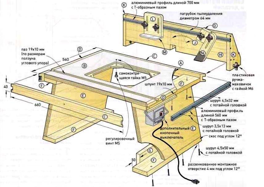 В централната част на масата е монтиран захранващ блок, който върти фрезата. С помощта на скоби и други устройства заготовката се фиксира в желаното положение и се движи по дадена траектория. Такова работно място е оборудвано с оперативна система за отстраняване на прах.