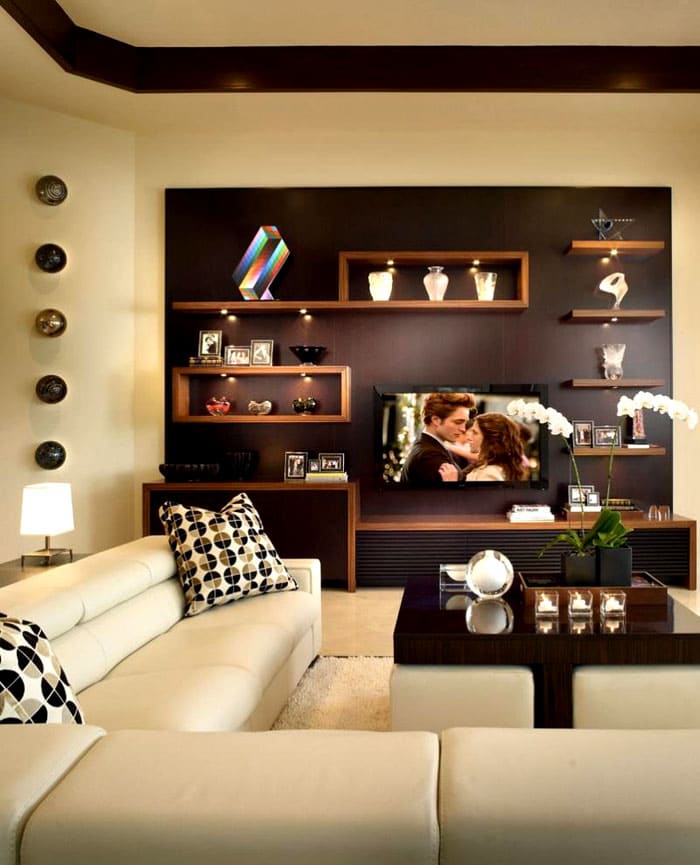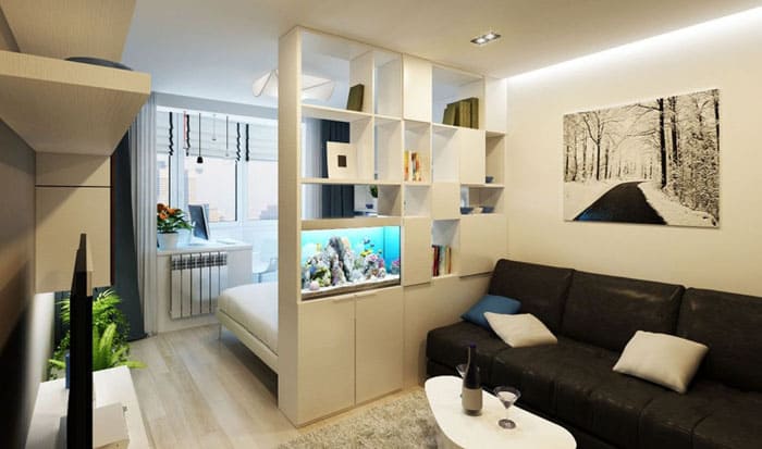 Дизайн без задна стена визуално няма да направи пространството по-малко, но ще подчертае необходимите зони