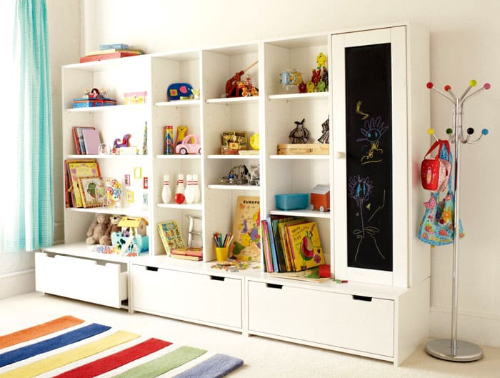 Стелажи за съхранение на играчки: решаване на проблема с реда в детската стая