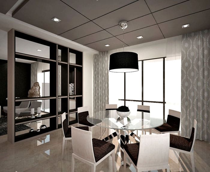 В допълнение към естетиката, ние се интересуваме от такава функция като възможността за зониране. Такъв дял разделя стаята на секции, без да губи нито едно изображение.