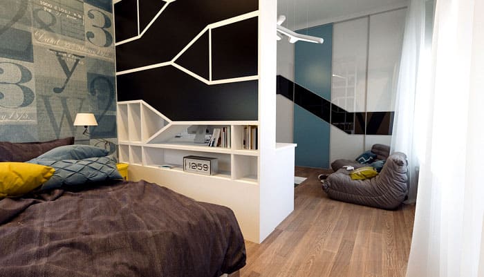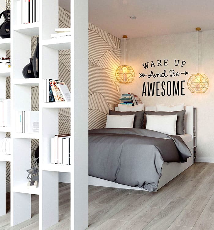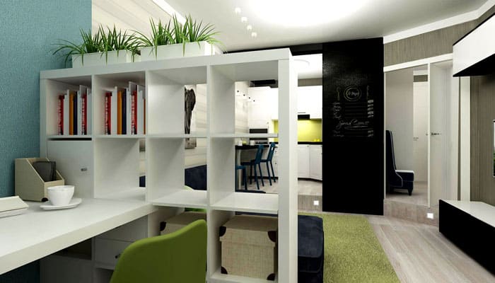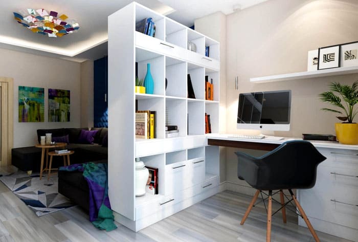 Дизайн на стаи, използващи стелажи за зониране на пространството