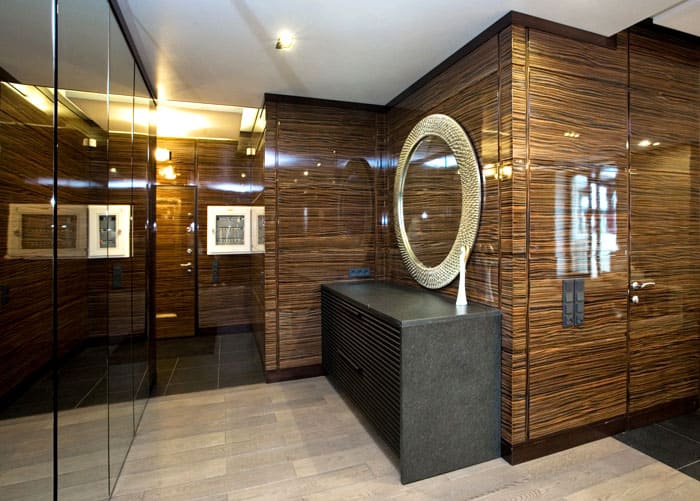 Публичните пространства са по-уязвими от частните жилища: човешкият фактор играе важна роля тук. Ето защо стенните панели са намерили своето приложение като декорация за обществени помещения: почиства се лесно, температурният режим е подходящ, има достатъчно цветове и видове за всеки вкус.