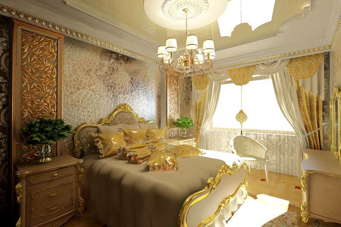 Неговата основа е златото и богатството на фараоните, следователно на фона на бели, бежови и пясъчни стени и тавани трябва да присъстват златни елементи. В същото време е много важно да се внесе в дизайна син цвят, който олицетворява водата на Нил: