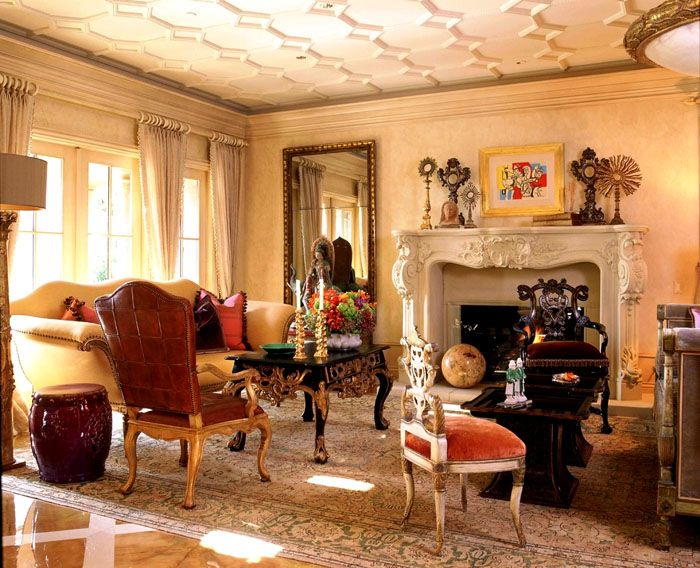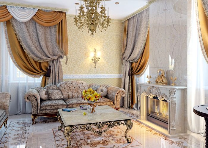 Стилът рококо в интериора се появява през осемнадесети век и се основава на гръцки митове и приказки. По отношение на изтънчеността, това е една от най-уникалните дестинации, в която комфортът и луксът са преплетени. Затова стаята е изпълнена с много мебели. Това е не само мека група (диван и фотьойли), но и няколко тахти, дивани, маси, скринове и други предмети.