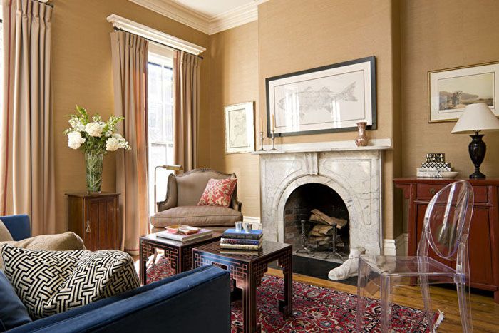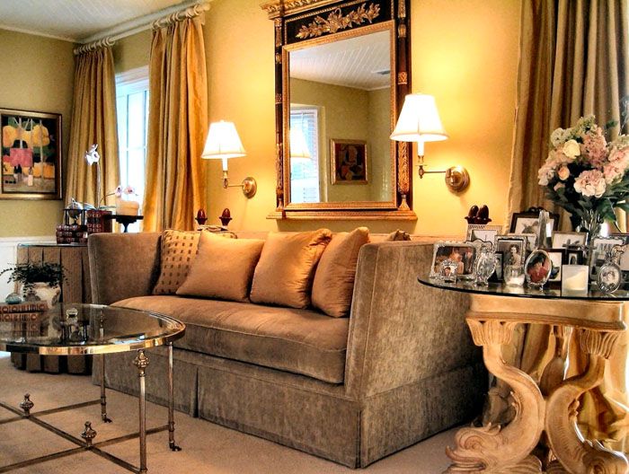 - Мебелите трябва да бъдат висококачествени с елегантни форми. Тук можете да смесвате класически мебели с модерни нотки. Например извити крака на столове и маси с прави подлакътници за столове и диван. Трябва да присъства симетрията на аранжимента, докато е важно да се намери един обект, около който да се събира целият ансамбъл.