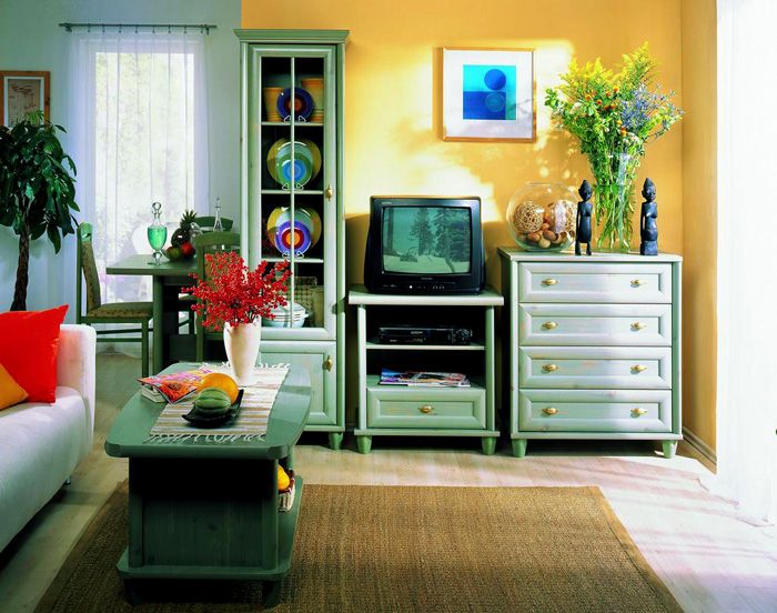 - Що се отнася до мебелите, то трябва да бъде с флоридни аксесоари, без остри ъгли, стъклени вложки и изискани дръжки, извити крака. Мека мебел трябва да бъде голяма и удобна за сядане.