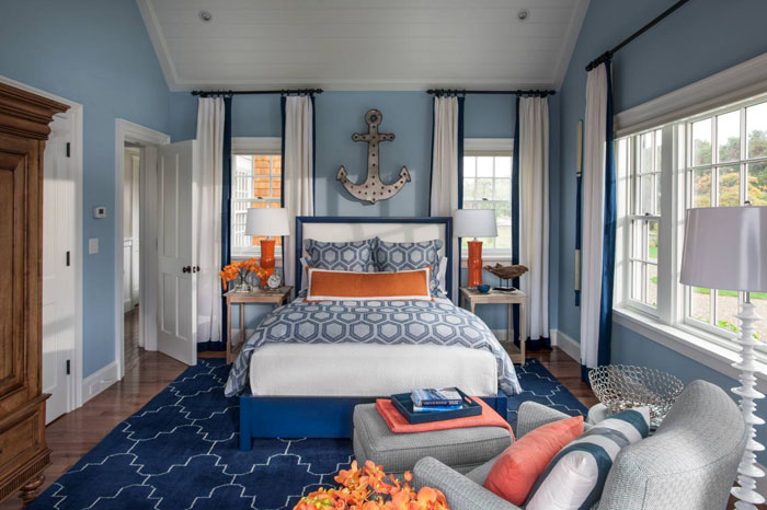 Самото име говори само за себе си. Морският стил е бял, син и светло син, които преобладават в интериорния дизайн. Тук морската тема е важна, въпреки че дизайнерите често се отклоняват от традицията, като въвеждат напълно различни допълнения към морската тема. И това не разваля интериора.