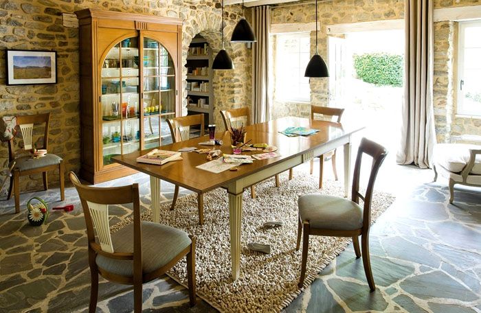 - Обикновено стените се украсяват с бяла мазилка или хартиени тапети, дървени ламперии или керамични плочки. Много често можете да намерите корк или камък в интериора.