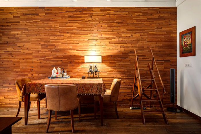 - Разбира се, градски апартамент не може да бъде толкова натоварен, следователно за неговата декорация се използва лека версия без мазилка и дърворезба, ярки акценти в цветове. Все по-сдържани.