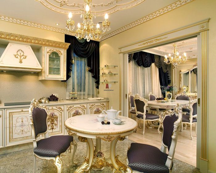 - Кристал, позлата, порцелан се използват за допълване и подчертаване на лукса.