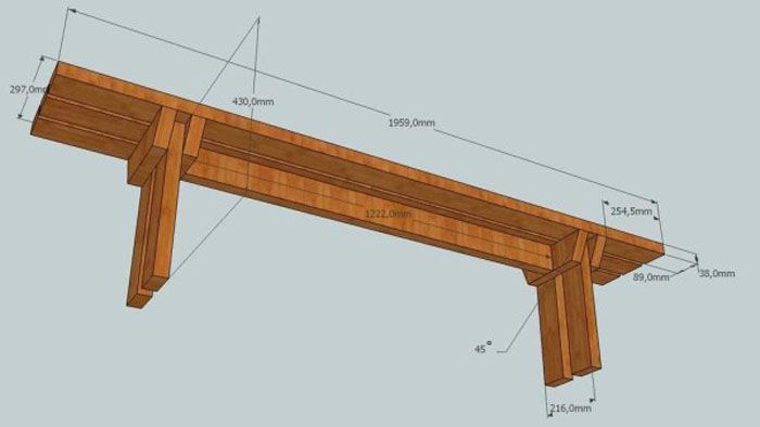 - За разлика от закрепващите елементи под пейките, на масата те се изрязват под ъгъл от 52 °.