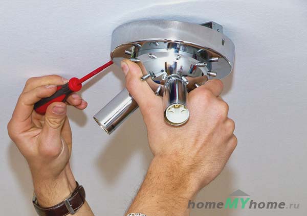 Монтажът трябва да се извършва през деня, а къщата трябва да бъде обезсилена. В края на работата проверете работоспособността на устройството и правилната връзка. Ако връзката е неправилна, ще настъпи късо съединение, RCD системата ще работи и захранващата верига ще се отвори и полилеят ще изгасне.