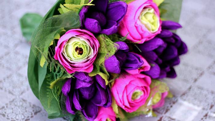 Букетите от карамфил от гофрирана хартия изглеждат точно като естествени.