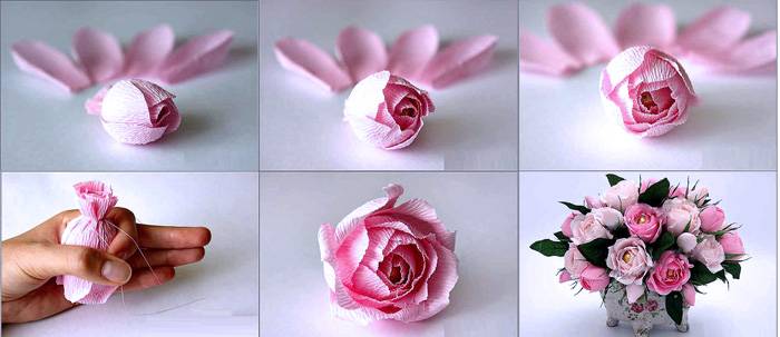 Как да направите сами рози от гофрирана хартия стъпка по стъпка
